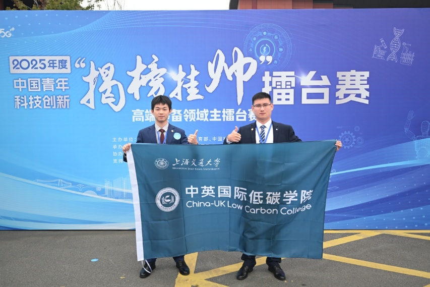 近日,由共青团中央、中国科协、教育部、中国社会科学院、全国学联共同主办的第十九届"挑战杯"竞赛2025年度中国青年科技创新"揭榜挂帅"擂台赛高端装备领域和新能源领域主擂台分别在长沙市和北京市举行,上海交通大学中英国际低碳学院首次参赛便取得佳绩,三支师生科创团队共斩获特等奖1项、一等奖1项、优胜奖1项,实现了获奖质量与数量的“开门红”。
