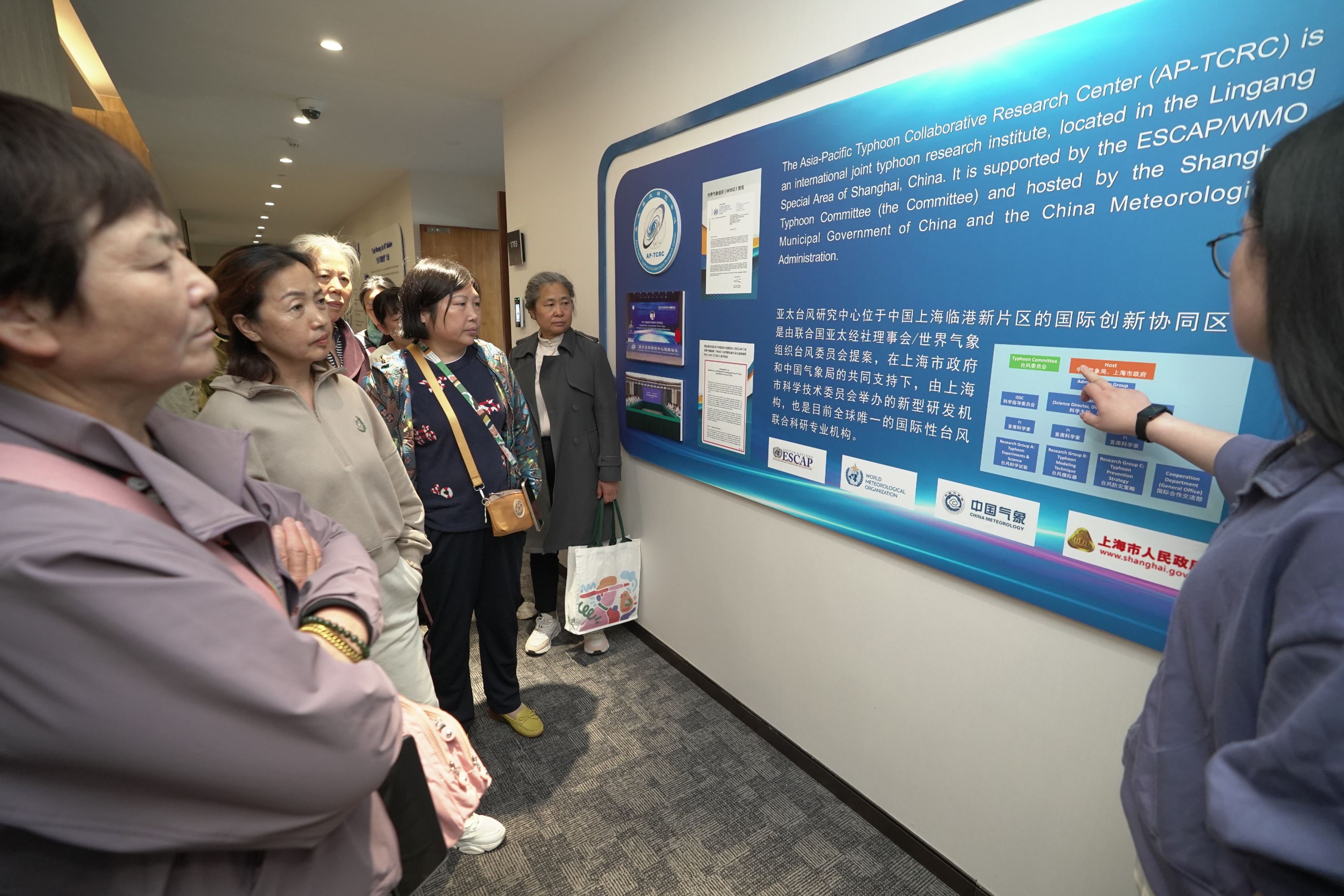 随后,参与者前往全球唯一的国际性台风专业研究机构-上海亚太台风研究中心进行实地参观。研究中心办公室主任朱情逸详细介绍了机构的科研布局,包括亚太区域台风试验中心、台风数值模式研发中心等多个部门。她表示,该中心致力于推动上海成为世界台风-海洋气象科学研究高地,通过开展台风数值预报、科学观测试验等研究,为台风预警和防灾减灾提供科技支撑。老年学者们纷纷表示:“这样的研学活动让我们老年人也能跟上时代发展,了解最前沿的科技知识,感觉特别有意义。”